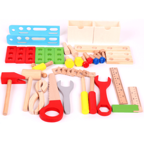 wooden kids play tool set with box